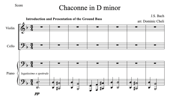 A new arrangement of Bach's iconic "Chaconne in D minor" for piano trio.